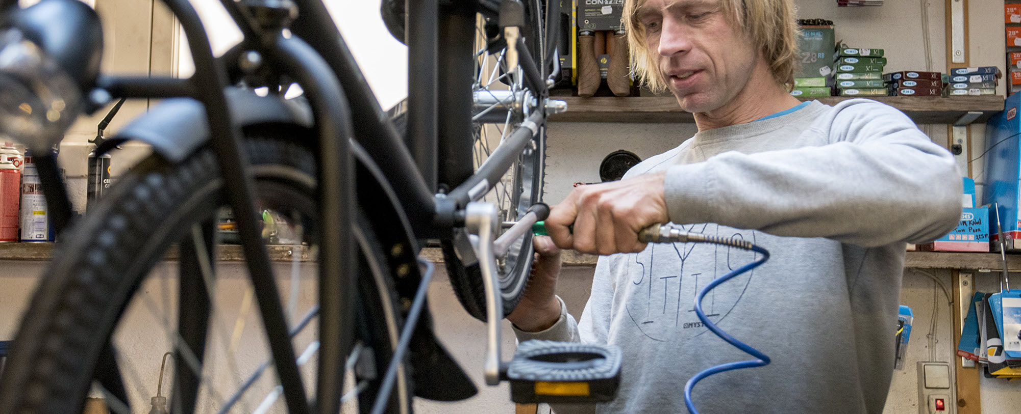 Naast het aanschaffen van een nieuwe fiets of accessoires kan je bij Trappers ook terecht voor reparaties en onderhoud. Erik en zijn team repareren je fiets vakkundig of ze knappen hem voor je op. Zodra je fiets klaar is ontvang je een SMS, super handig.